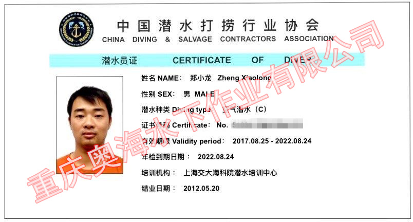 中國潛水打撈行業(yè)協(xié)會潛水員證