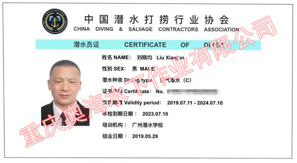 中國潛水打撈行業(yè)協(xié)會潛水員證